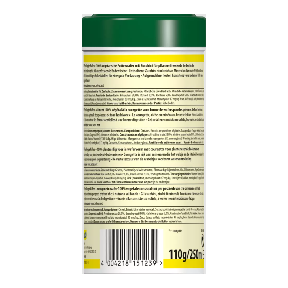 Tetra Pleco Veggie Wafers zapewniają optymalny, dostosowany do gatunku ryb pokarm dla dennych ryb roślinożernych. Wafle zawierają cukinię, która jest bogata w składniki mineralne i wspomaga dobrostan i witalność ryb. Pokarm zawiera także niezbędny błonnik wspomagający zdrowe trawienie. Ponadto wafle charakteryzują się dużą stabilnością, dzięki czemu wszystkie niezbędne składniki odżywcze pozostają w pokarmie do ostatniego kęsa. Dzięki stałej konsystencji wafle nie powodują mętnienia wody.