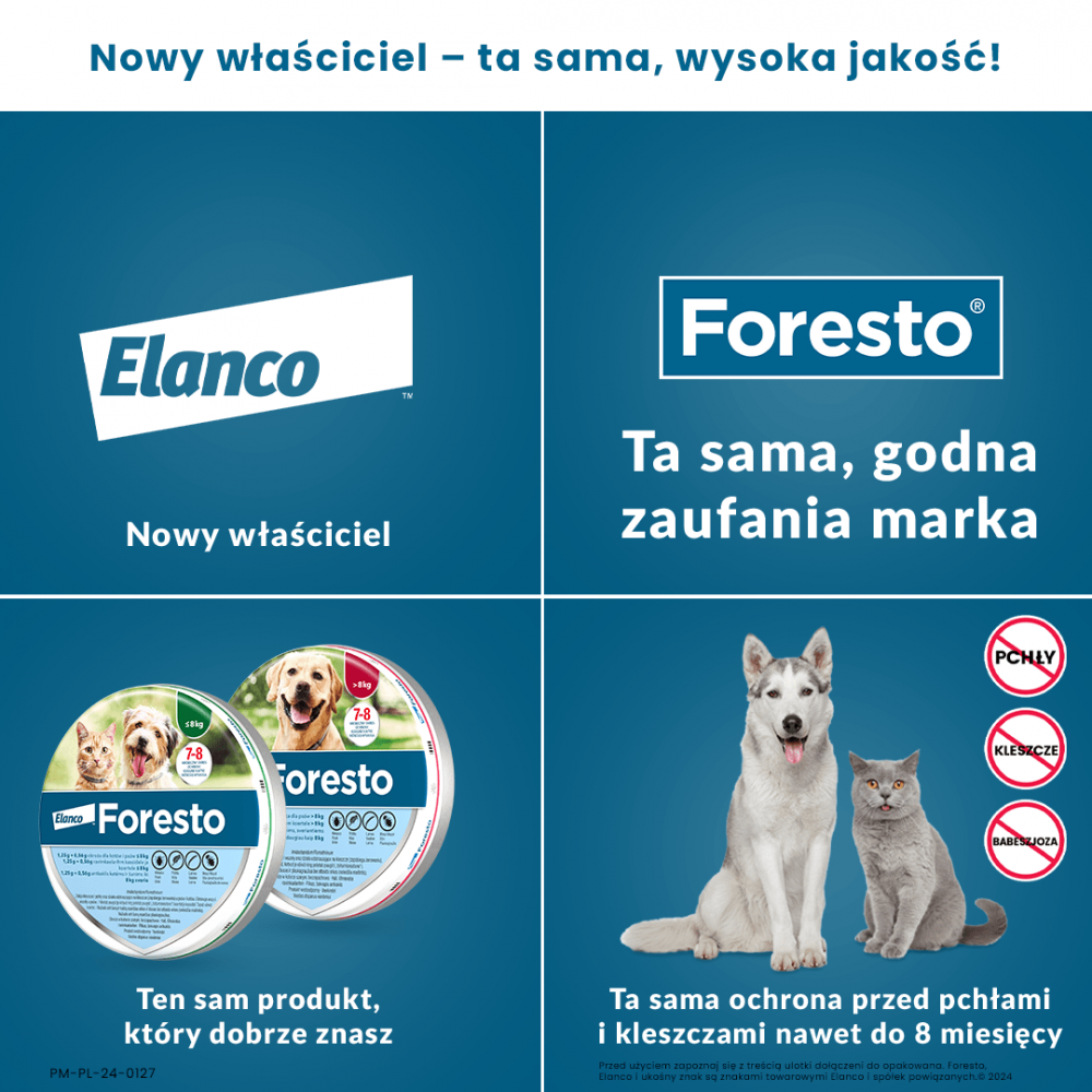 Twój pupil zmaga się z problemem kleszczy lub pcheł ? Obroża przeciwpchelna i przeciwkleszczowa Foresto pomoże Ci skutecznie rozwiązać ten problem !