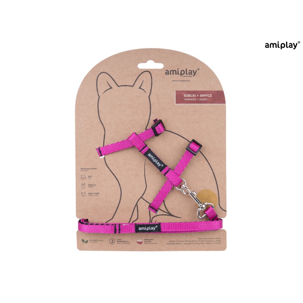 Amiplay Twist Szelki + Smycz Dla Kota Rozmiar M Różowe
