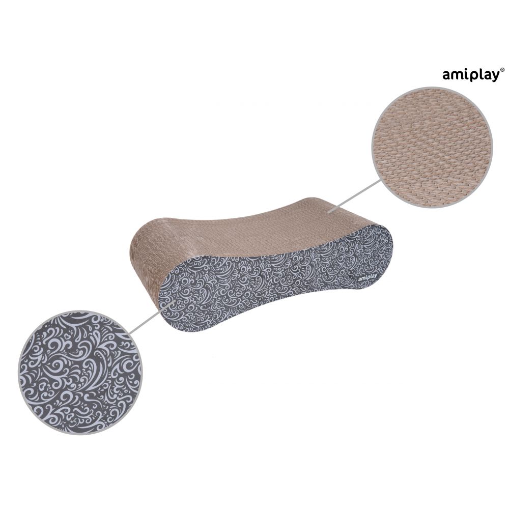 Ergonomiczny kształt zachęca kota do drapania a ustawiony w odpowiednim miejscu w domu sprawdzi się również jako legowisko.