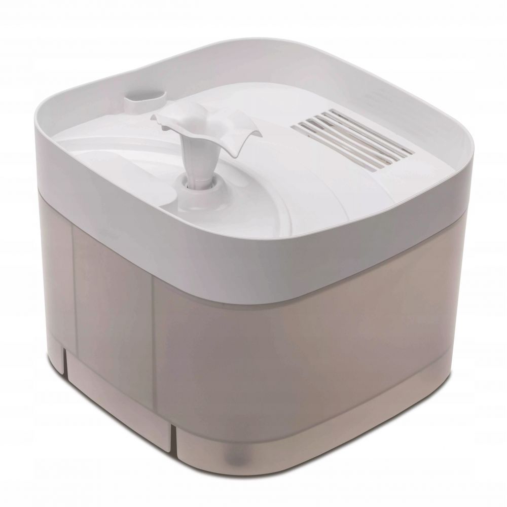 Opis produktu CatSpring to przepływowe poidło dla kotów i psów. Posiada cichą, energooszczędną pompę o bezpiecznym napięciu 5V z klasą szczelności IPX8, czujnik zabezpieczający przed pracą pompy „na sucho” oraz diodę LED sygnalizującą poziom wody niewystarczający do prawidłowej pracy pompy. Duża pojemność magazynowania (2,5 l) sprawia, że woda w urządzeniu nie musi być często uzupełniana, chociaż zaleca się jej codzienną wymianę oraz czyszczenie poidła minimum raz na 7 dni. O czystość wody w zbiorniku dba dołączony do zestawu filtr o dwóch warstwach: zadaniem gąbki jest wyłapywanie sierści, a warstwa węgla aktywowanego usuwa nieprzyjemny smak i zapach.