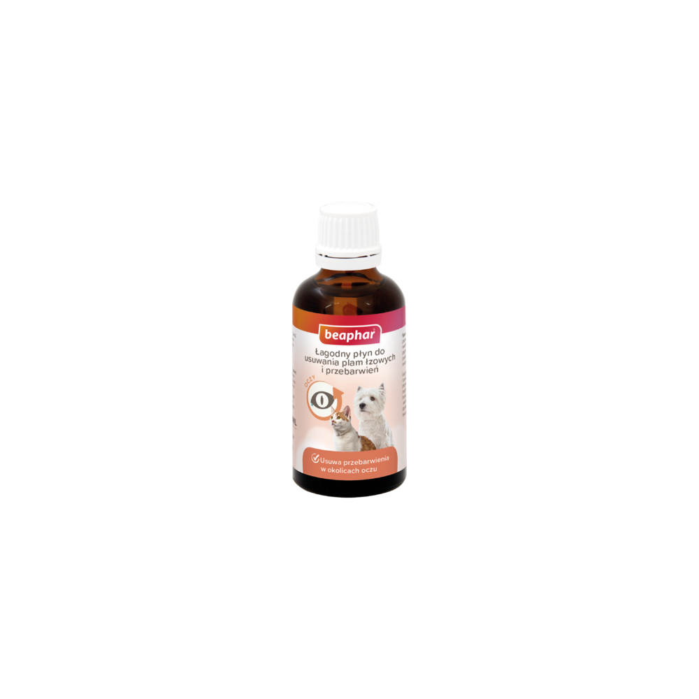 Beaphar Łagodny Płyn Do Usuwania Plam Łzowych i Przebarwień Dla Psów i Kotów Oraz Małych Zwierząt Domowych 50 ml