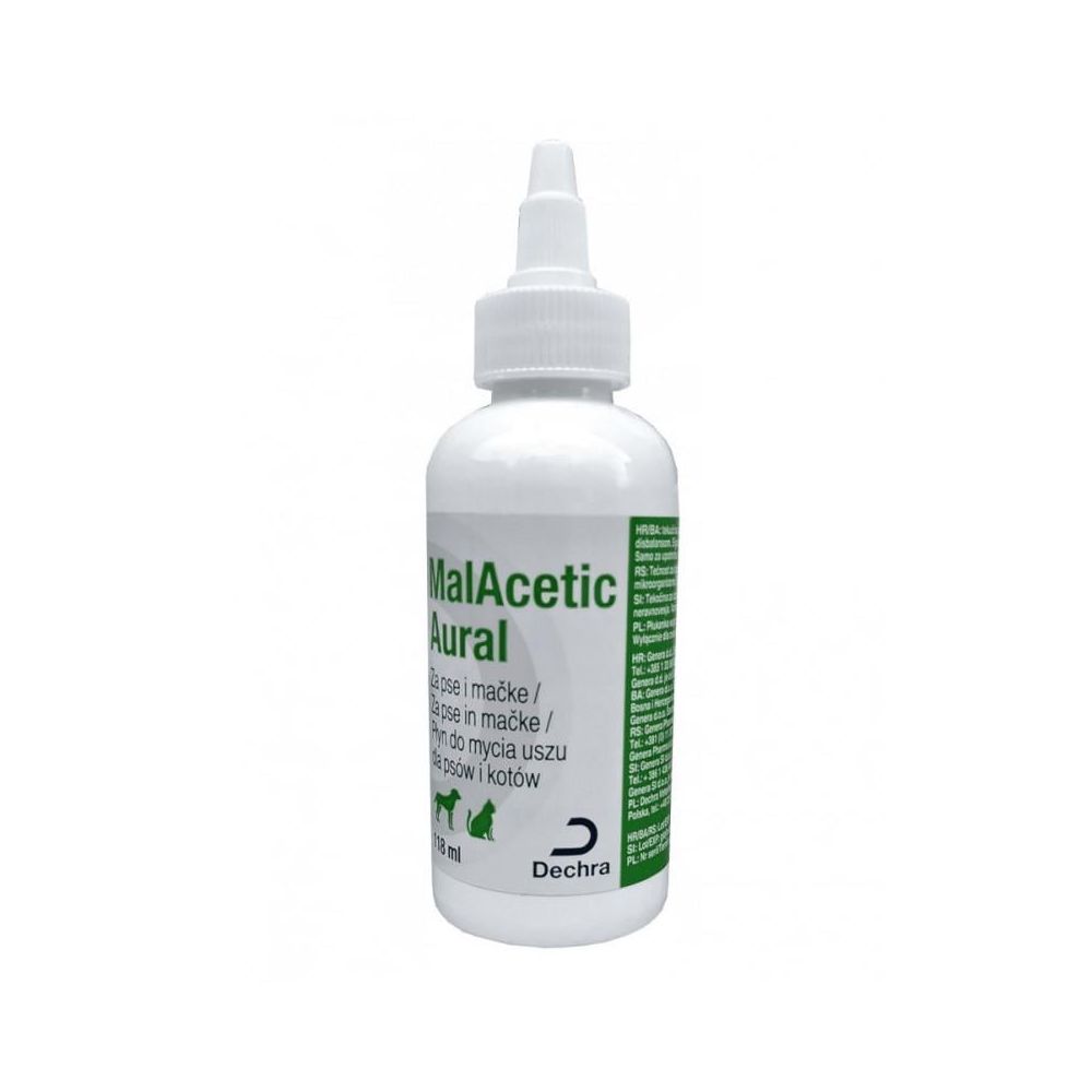 MalAcetic Aural 118 ml płyn do mycia uszu dla psów i kotów.