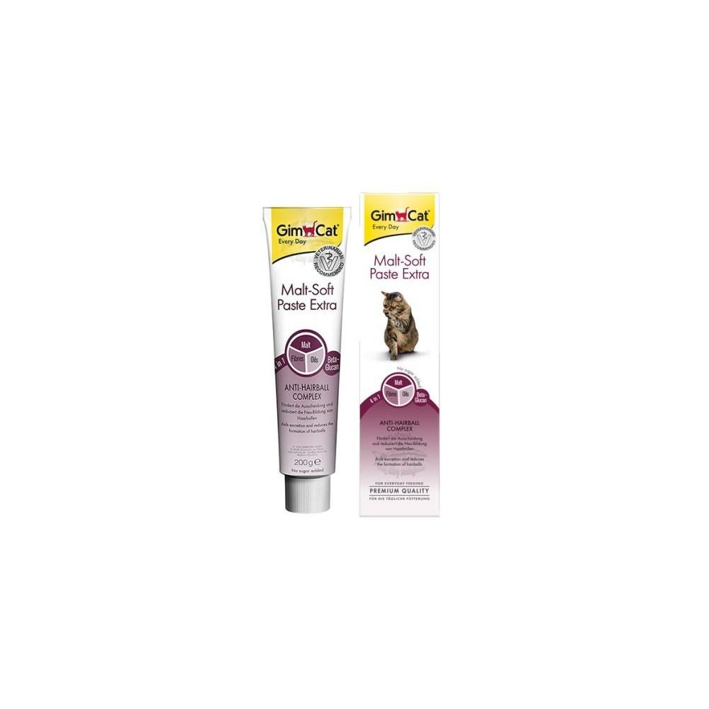 GIMCAT Malt-Soft Paste Extra 20g pasta odkłaczająca oferuje kompleksowe wsparcie dla zdrowia przewodu pokarmowego kota, pomagając w naturalnym przemieszczaniu połkniętych włosów przez przewód pokarmowy. Aromatyczny słód i olej roślinny nie tylko korzystnie wpływają na zdrowie, ale są również bardzo smakowite dla kotów, co zwiększa akceptację produktu. Błonnik pokarmowy zawarty w paście ułatwia trawienie i przeciwdziała zaleganiu niestrawionych resztek pokarmowych.
