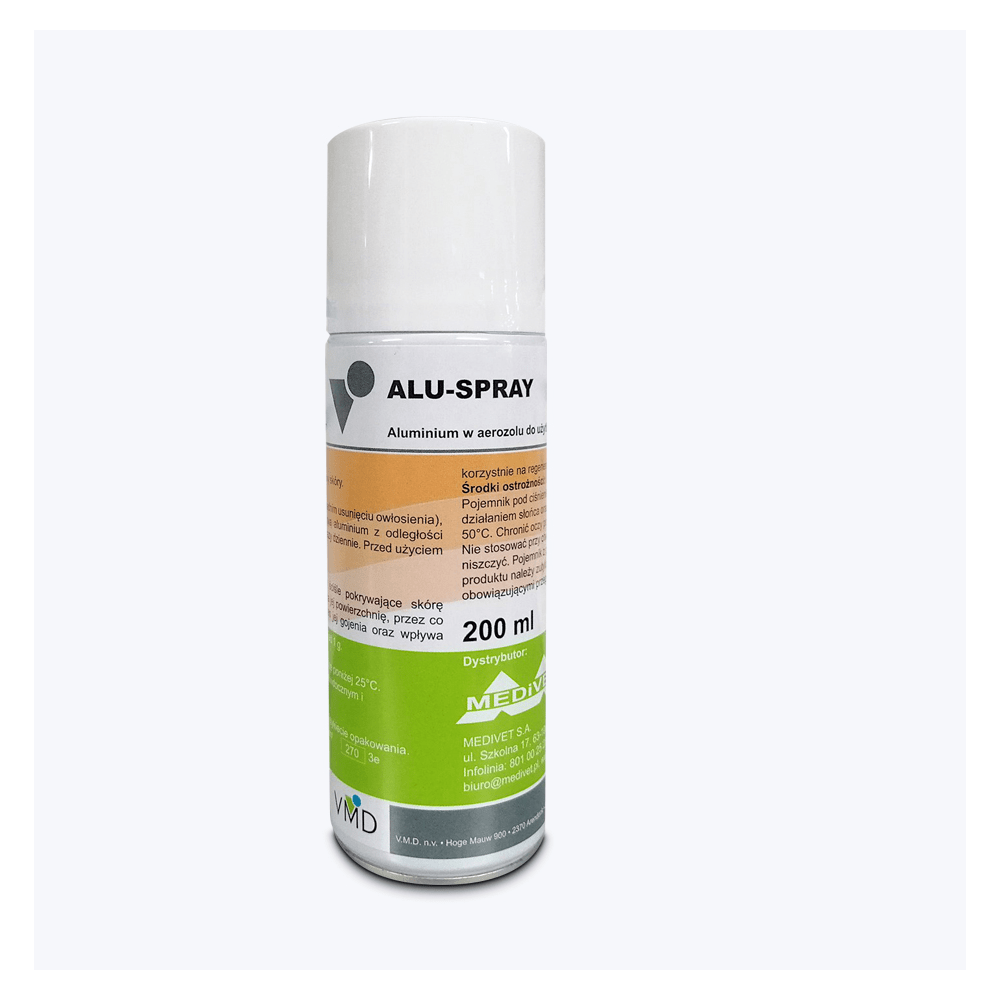 SKŁAD:Aluminium, Excipiens: ad 1 g.DZIAŁANIE:Zmikronizowane aluminium działa na rany ochraniająco, antybakteryjnie, zwiększa kontrakcję brzegów ran, przyśpiesza proces gojenia. WSKAZANIA:Rany przypadkowe, pooperacyjne.STOSOWANIE:Ranę po oczyszczeniu i odkażeniu pokryć cienką warstwą aluminium z odległości ok. 30 cm. Stosować 1-2 razy dziennie. Przed użyciem wstrząsnąć, Chronić oczy przed bezpośrednim kontaktem.