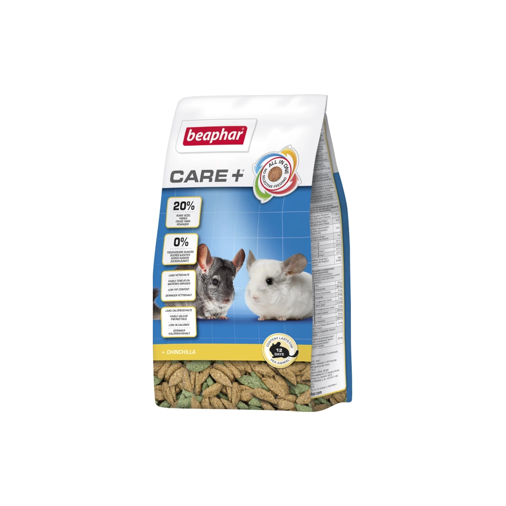 Care+ to wyjątkowo smaczna, doskonale zbilansowana, pełnoporcjowa sucha karma dla szynszyli. Receptura karmy została opracowana przy współudziale lekarzy weterynarii, dietetyków i hodowców szynszyli. Specjalny proces produkcji wykorzystujący działanie wysokiego ciśnienia i temperatury (ekstruzja) zapewnia wysoką przyswajalność białka, eliminuje z diety bakterie, pleśnie i wirusy, czyniąc z tego produktu zdrowy, bezpieczny i pożywny posiłek.