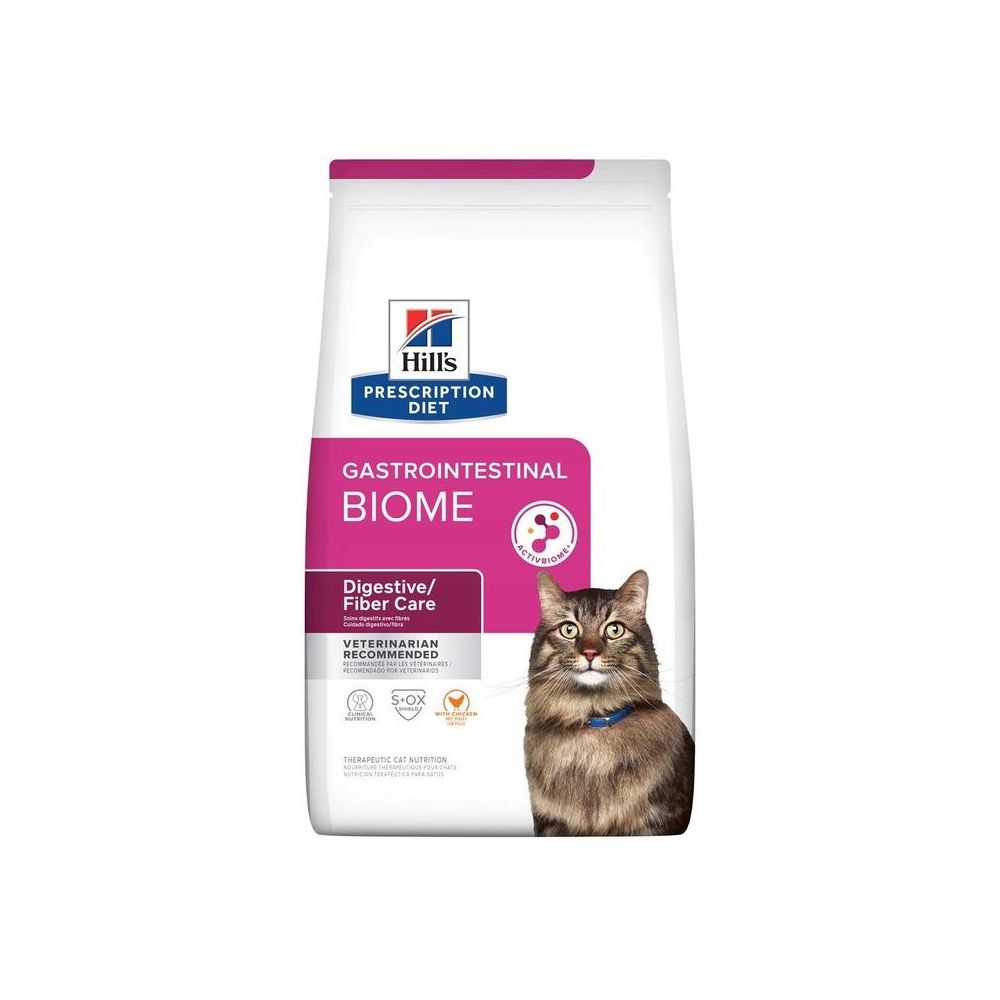 Karma dla kotów Hills PRESCRIPTION DIET Gastrointestinal Biome z kurczakiem to wysoce lekkostrawna i pełnoporcjowa karma dietetyczna wspomagająca ograniczanie objawów zaburzeń wchłaniania jelitowego oraz kompensowanie efektów złego trawienia u dorosłych kotów. Ta karma wzbogacona błonnikiem ma zwiększoną zawartość sodu i potasu oraz zawiera wysoce lekkostrawne składniki.