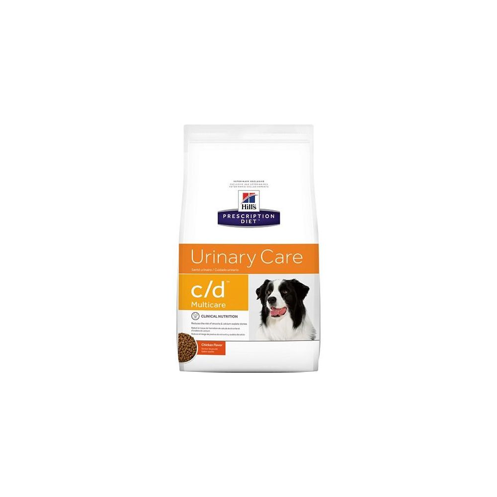 Karma dla psów Hills PRESCRIPTION DIET c/d Multicare z kurczakiem to pełnoporcjowa karma dietetyczna wspomagająca redukcję nawrotów kamieni struwitowych, rozpuszczanie kamieni struwitowych oraz redukcję powstawania kamieni ze szczawianu wapnia u dorosłych psów. Ta karma ma własności zmniejszające nasycenie moczu struwitem, własności alkalizujące mocz oraz ma niską zawartość magnezu, wapnia i witaminy D.
