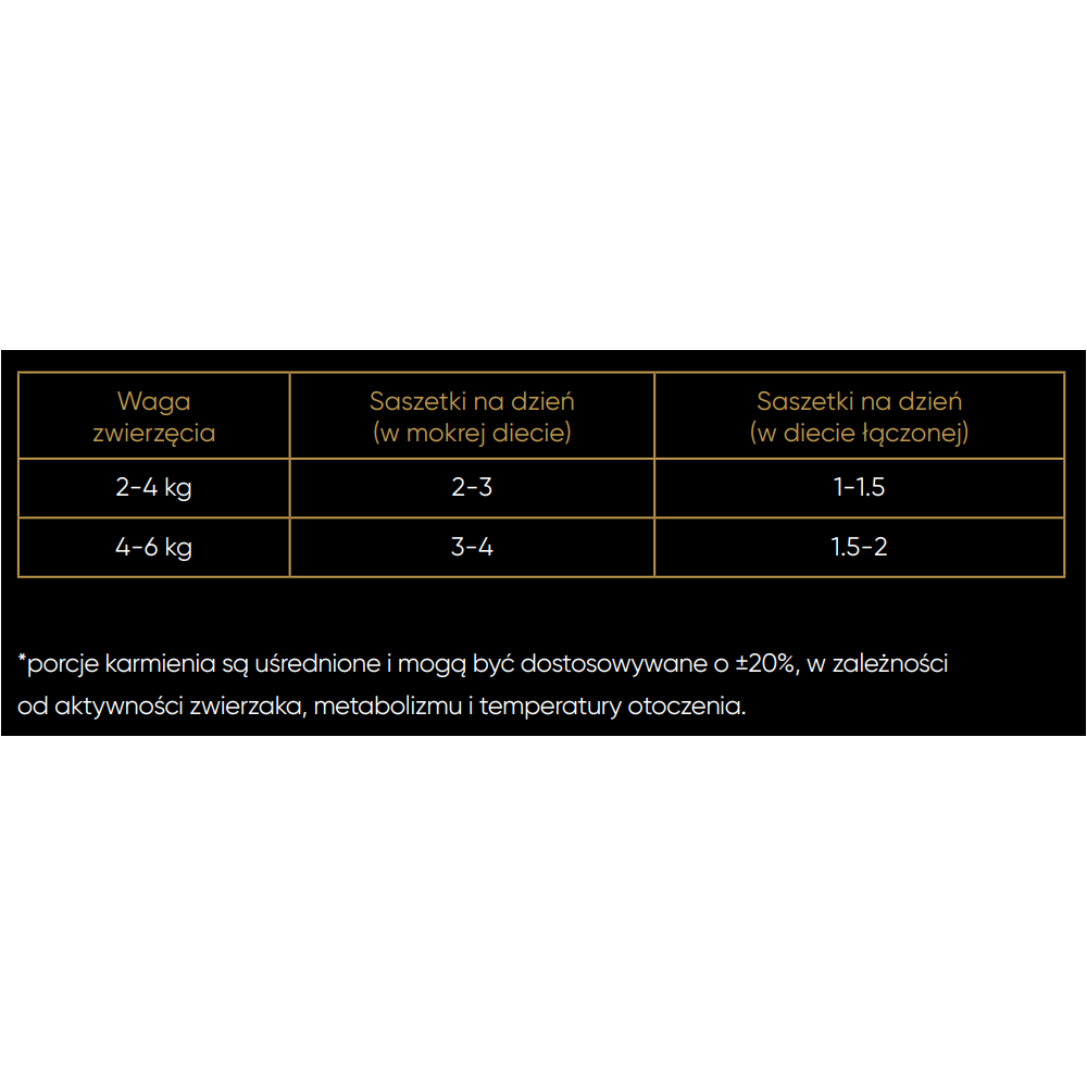 *porcje karmienia są uśrednione i mogą być dostosowywane o ±20%, w zależności