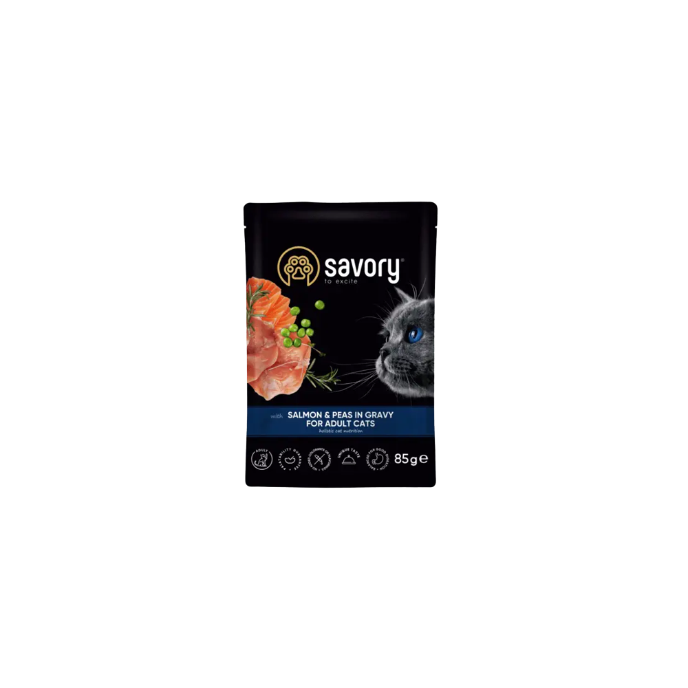 Savory Cat Adult Salmon&Peas Gravy Karma Mokra Dla Dorosłych Kotów z Łososiem i Groszkiem w Sosie 85 g (Numer produktu: 154362)