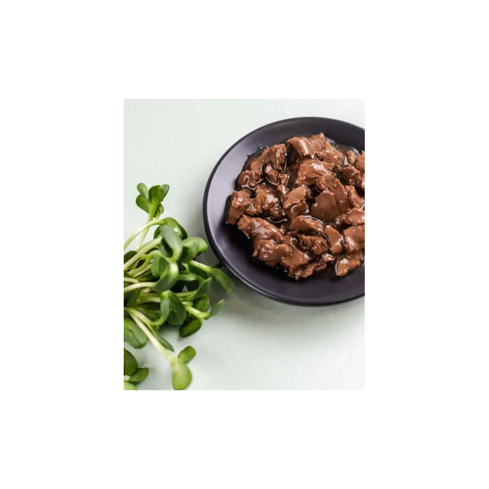Wybrane kawałki mięsa w sosie dla kotów, które nie przepadają za galaretką i pasztetem.