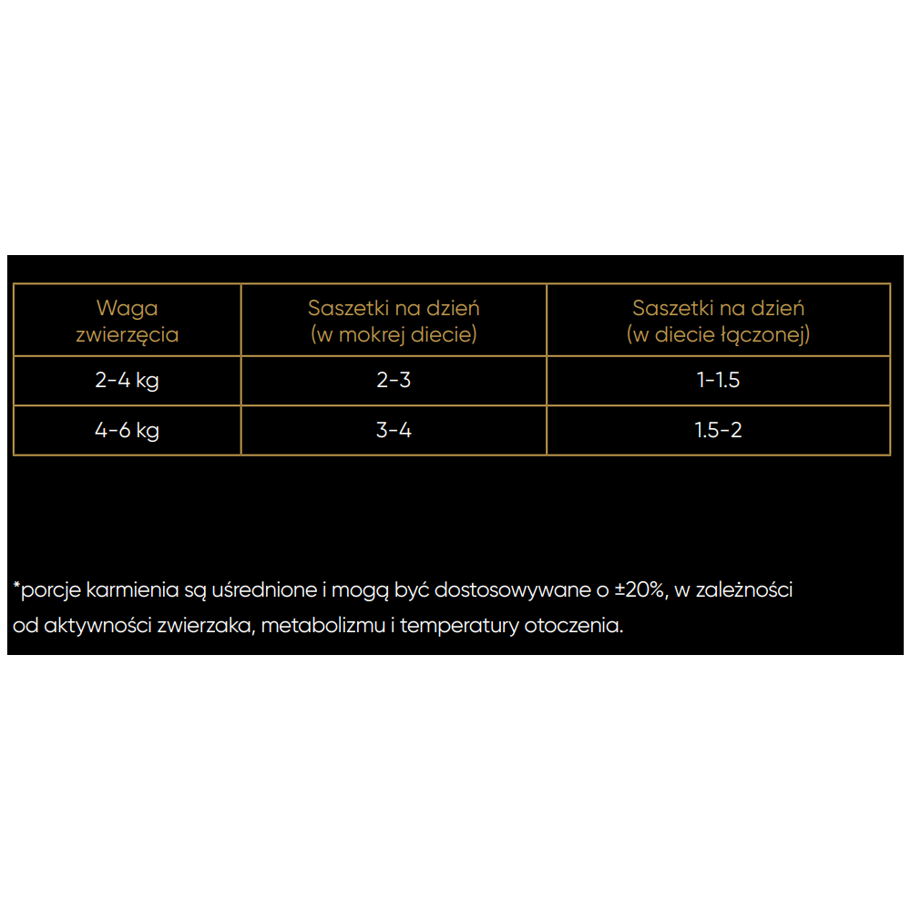 *porcje karmienia są uśrednione i mogą być dostosowywane o ±20%, w zależności