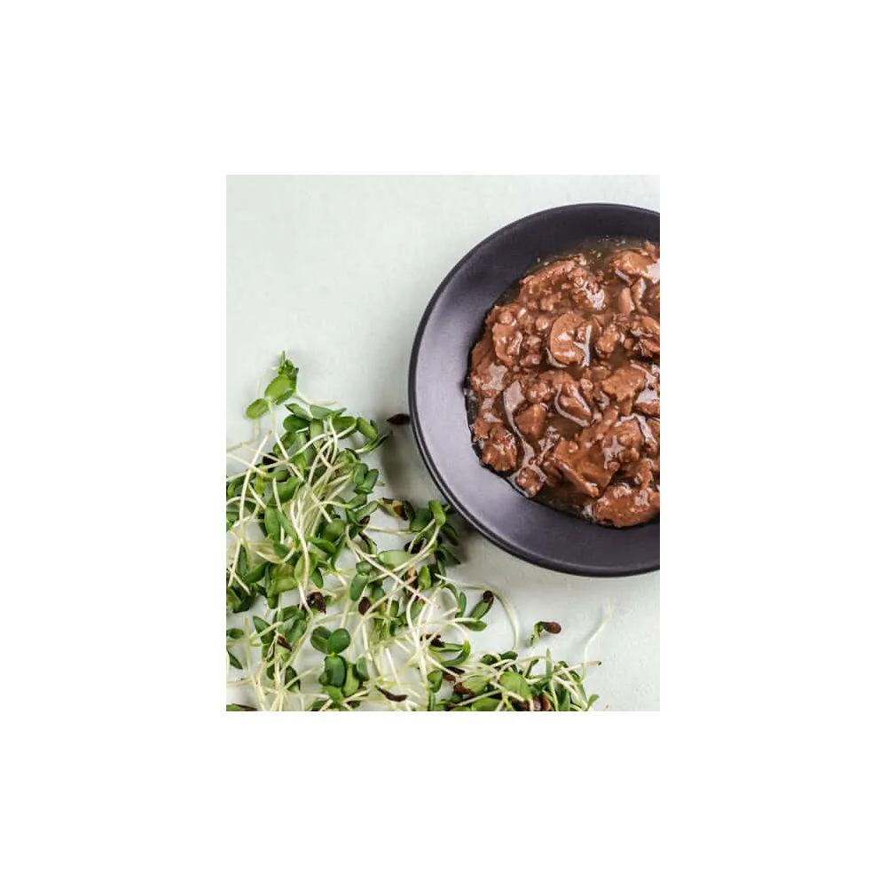 Wybrane kawałki mięsa w galaretce dla kotów, które nie przepadają za sosem i pasztetem.