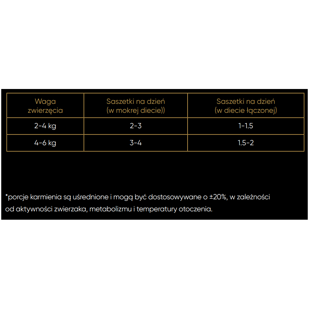 *porcje karmienia są uśrednione i mogą być dostosowywane o ±20%, w zależności