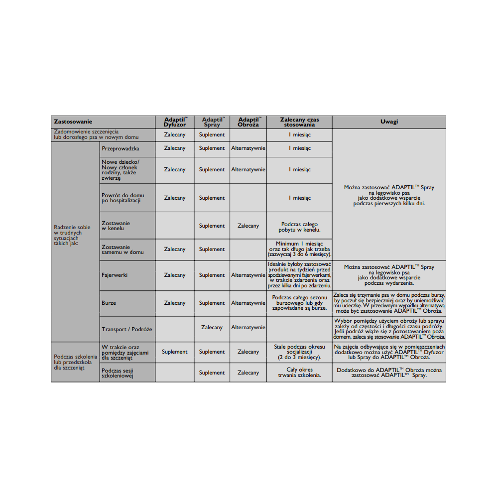 Dawkowanie: ADAPTIL Obroża wystarcza na 4 tygodnie. Wymienić obrożę, jeśli konieczne. Przez cały ten czas nie zdejmuj psu obroży, chyba że na czas kąpieli.