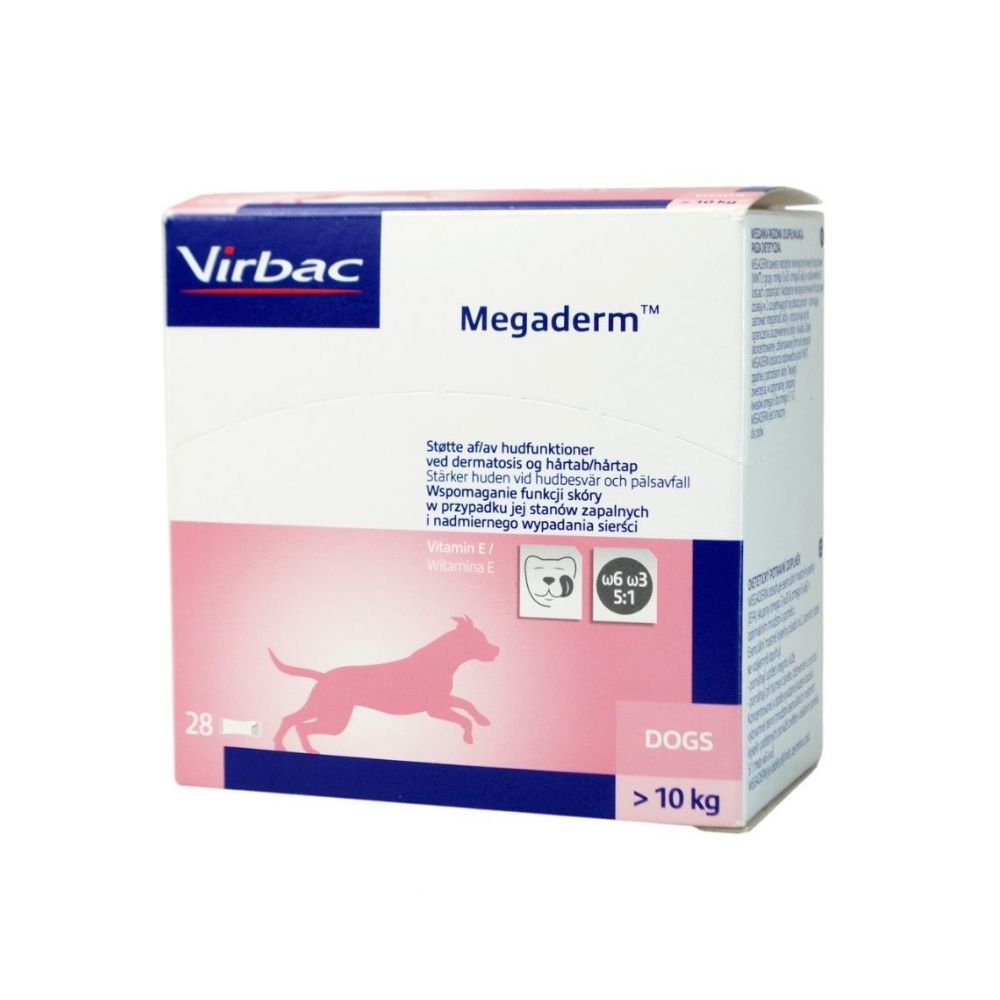 Megaderm jest suplementem diety (mieszanką paszową uzupełniającą) zawierającym najlepsze niezbędne nienasycone kwasy tłuszczowe (NNKT) z rodziny omega 3 (Ѡ3) i omega 6 (Ѡ6), w optymalnych ilościach i w idealnej proporcji.